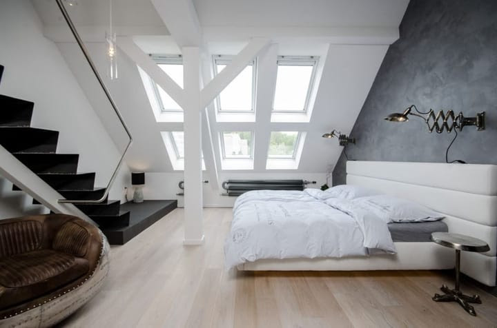 Say yes to the grey in the attic, as well. The Grey Loft’s bedroom (design by OOOX) itself is equipped with a large, comfortable, custom-made bed, which seems lifted from the floor by illumination under the structure, creating a a floating effect.
